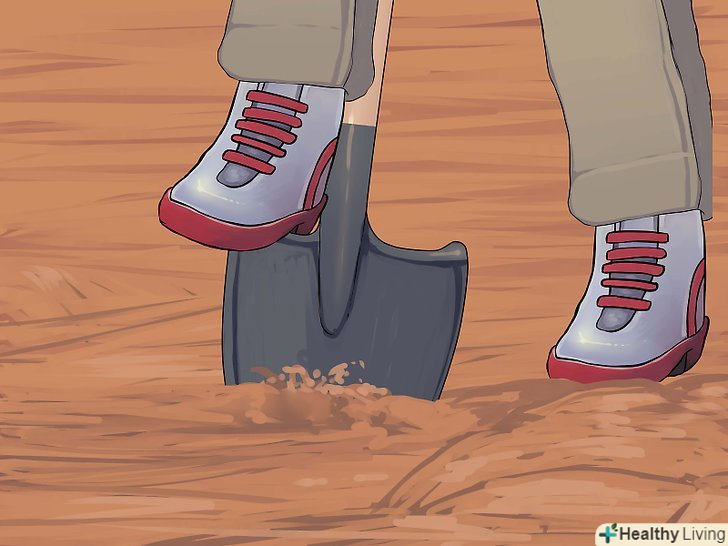 Викопайте ями для підпірок. рівномірно розподіліть простір для підпірок по периметру підготовленої ділянки для навісу, а потім за допомогою землерийного інструменту викопайте ями. Вони повинні бути як мінімум 60 см глибиною або глибше для більшої стійкості, якщо ви живете в місцевості з вітряним кліматом і рясними снігопадами.