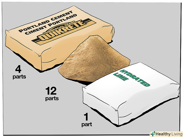 Якщо хочете, змішайте штукатурку самостійно. Штукатурка зазвичай виготовляється з портландцементу, піску, гашеного вапна і води. [1] хоча деякі рецепти приготування суміші для штукатурки відрізняються, у вас може вийти відмінний результат, якщо ви просто змішаєте компоненти в співвідношенні 4:12:1 (цемент, пісок і вапно відповідно), а потім додасте достатньо води і повільно перемішайте суміш до консистенції вологого горіхового масла.- Якщо побажаєте, ви можете додати трохи будівельного пігменту в змішану штукатурку, щоб наблизитися до кольору навколишнього стіни. Це полегшить фарбування нової, тільки що нанесеної штукатурки і змішає її з існуючою штукатуркою, але вам все одно буде потрібно пофарбувати потім всю стіну, якщо кольори збігаються в повному обсязі.