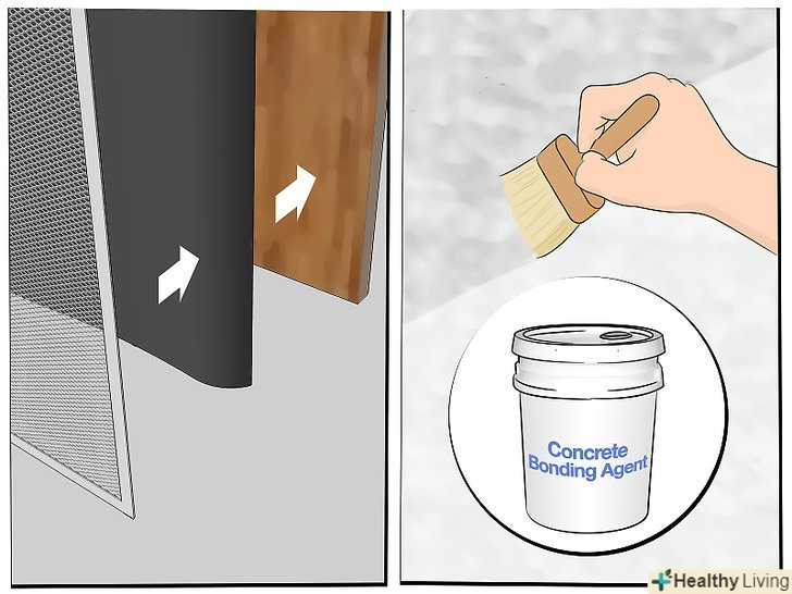 Підготуйте стіну до нанесення штукатурки. щоб штукатурка найкращим чином прикріпилася до стіни, попередньо підготуйте стіну. Звичайно, спосіб підготовки поверхні залежить від типу вашої стіни:- Для бетонних, цегляних або блокових стін: нанесіть шар клею на стіну. Дозвольте йому повністю висохнути, перш ніж перейти до наступного кроку.