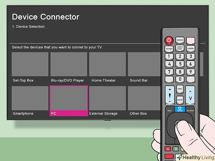 Запустіть програму "Менеджер підключень". з його допомогою комп'ютер під управлінням Windows можна підключити до телевізора LG Smart TV:[4]- Виберіть опцію "програми".