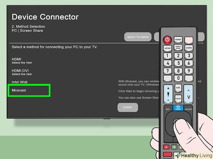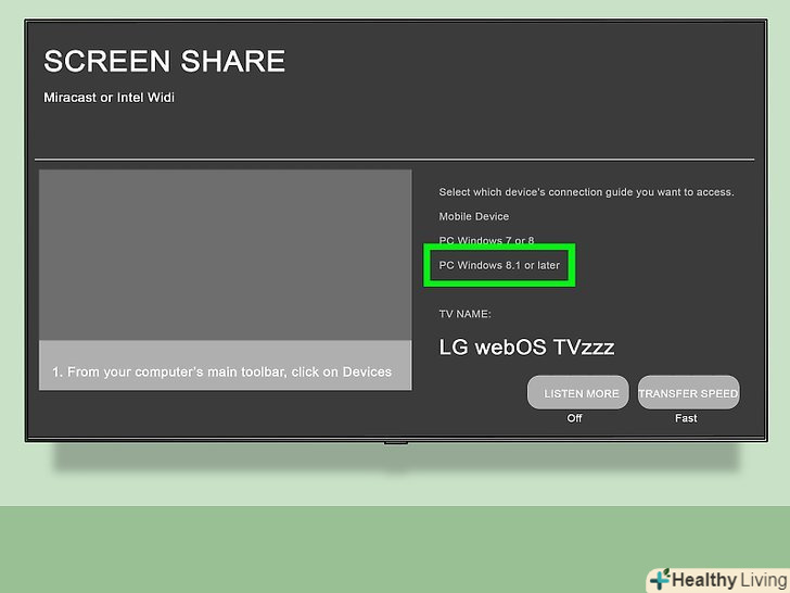 Зрозумійте, що являє собою технологія Miracast.з її допомогою можна відобразити картинку з комп'ютера на екрані LG без використання кабелів.- Рекомендуємо підключити телевізор і комп'ютер до маршрутизатора через Ethernet-кабель, щоб поліпшити якість потокової передачі відео і аудіо.