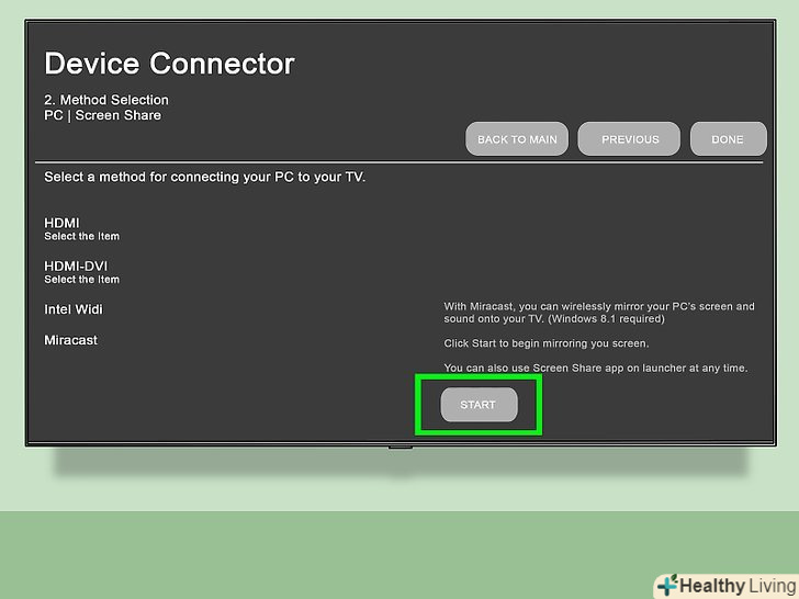 З цієї статті ви дізнаєтеся, як відобразити картинку з комп'ютера на екрані телевізора LG Smart TV. Щоб відтворити відео і звук на телевізорі, скористайтеся попередньо встановленою програмою SmartShare, технологією бездротової передачі даних Miracast або підключіть комп'ютер до телевізора за допомогою HDMI-кабелю.