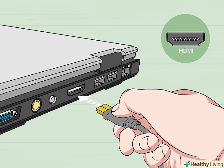 Підключіть інший кінець HDMI-кабелю до комп'ютера.Підключіть кабель до порту на комп'ютері.- Якщо ви купили адаптер для відеороз'єму комп'ютера, підключіть адаптер до комп'ютера, а потім підключіть HDMI-кабель до HDMI-порту на адаптері.