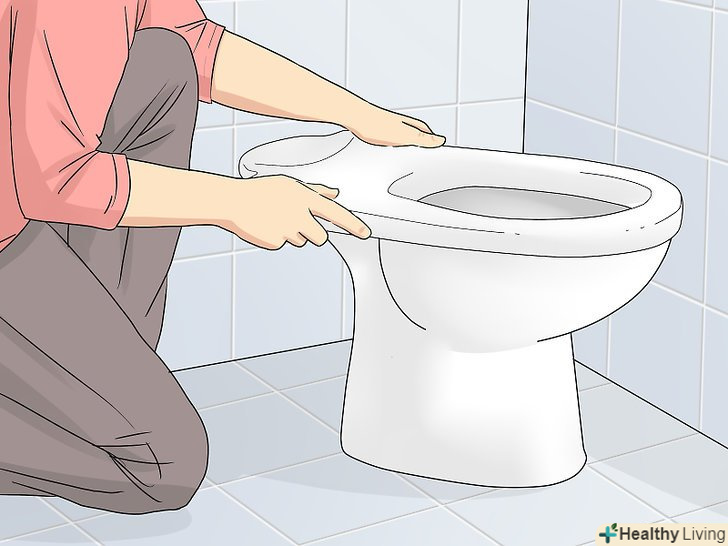 Встановіть унітаз. унітаз зазвичай складається з двох частин: чаші і бачка. Установку слід почати з монтажу чаші.- З'єднайте гофру (труба для з'єднання унітазу з каналізаційними комунікаціями) і зливну трубу каналізації, потім засуньте унітаз на місце, і відзначте передбачувані місця кріплення.