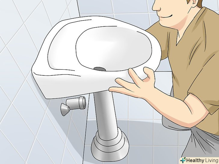 Встановіть раковину. для початку слід приміряти її до місця установки.- Позначте місце кріплення раковини до стіни, просвердлите необхідні отвори і встановіть раковину, використовуючи кронштейни, саморізи і дюбеля.