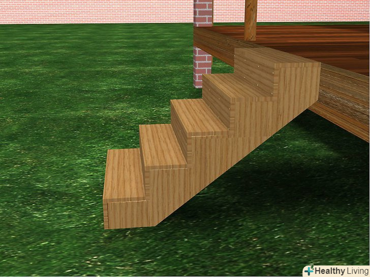 - Ви прикріпіть подступенок, дошку 2,5 X 20,3 см, що нагадує огороджувальну планку, до задньої або вертикальної частини ступені. Здебільшого ступені мають висоту від 15,2 до 20,3 см.