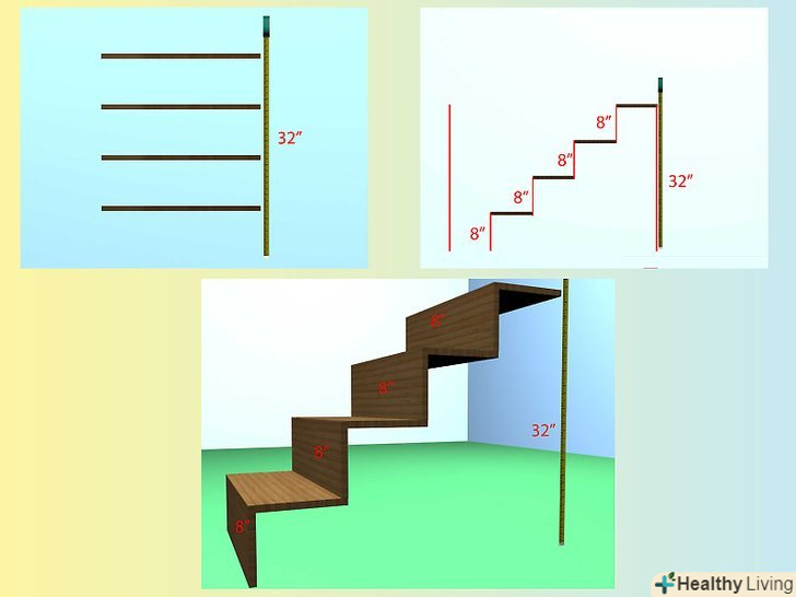 Підрахуйте горизонтальну відстань ступенів (якої довжини вони будуть).