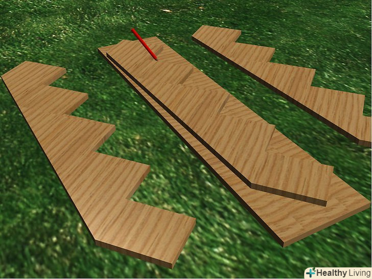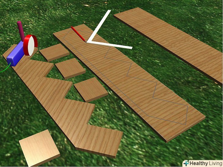 Встановіть ступені з дощок 5,1 X 15,2 см (знову розпиляєте на потрібну довжину) паралельно один одному, залишаючи відстань в 3 мм між дошками.