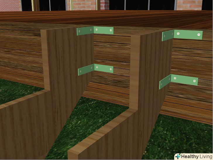 Прикріпіть косоури до ганку за допомогою металевих кронштейнів для косоура і шурупів довжиною 3,8 см.- Перевірте, щоб переконатися, що вони перпендикулярні і відповідають рівню один одного.