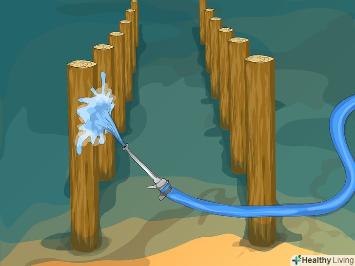 Відмийте палі від піску і бруду за допомогою реактивного струменя після того, як палі встановлені. це не обов'язково, якщо ви працювали в піску, тому що він сам досить швидко опаде.