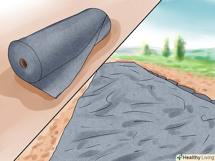 Укладання фільтруючої тканини на зворотну засипку. це дозволить не допустити морозного спучування і змішування грунту зі зворотним засипанням. Залежно від висоти підпірної стінки можна закласти заповнювач уздовж задньої поверхні траншеї або будинку, заповнити траншею зворотним засипанням до повного притиснення фільтруючої тканини, а потім накрити тканиною верхню поверхню засипки.