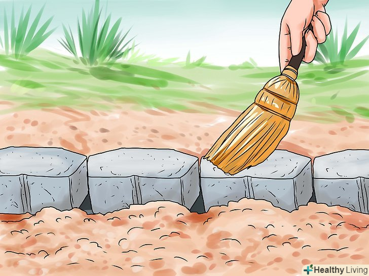 За допомогою грубозернистого піску і гумової киянки вирівняйте ряд блоків, надаючи остаточний вигляд всьому основи. витративши час на вирівнювання фундаменту, ви значно прискорите укладання першого ряду. При необхідності вирівнювання фундаменту використовуйте грубозернистий пісок. Осадка блоків виконується за допомогою гумової киянки.