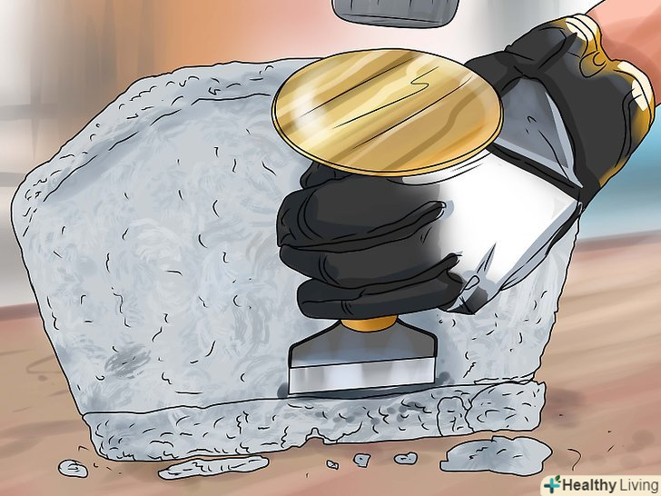 - Щоб розділити цеглу або кам'яний блок навпіл, нанесіть по центру лінію за допомогою долота муляра. Потім розташуйте долото на лінії і вдарте по ньому невеликою кувалдою.