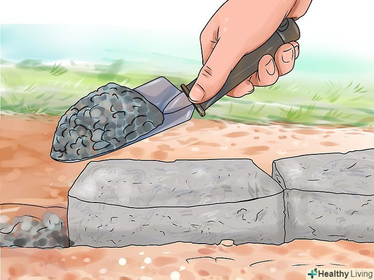 Утрамбуйте грунт і виконайте укладку підстави фундаменту. за допомогою трамбування (можна взяти напрокат) ущільните дно траншеї. Потім засипте шар гравію або кам'яного пилу 10-15 см. дрібний гравій буде відмінним вибором, завдяки тому, що він добре ущільнюється і забезпечує достатню жорсткість.- Після засипки гравію його необхідно розрівняти для отримання максимально рівномірного покриття.
