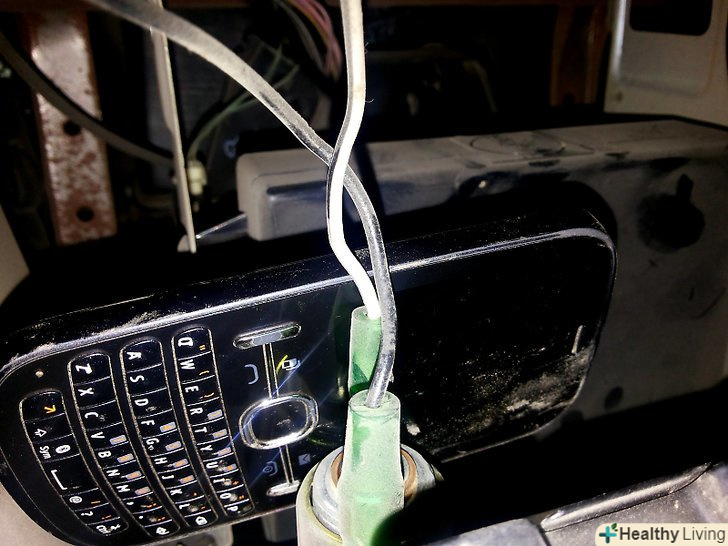Установка системи в машину.придбайте відповідний зарядний пристрій для телефону, який можна використовувати в машині. Підключіть 12-вольтовий вхід в зарядний пристрій до акумулятора автомобіля за допомогою проводів. Для надійного з'єднання використовуйте пайку. Пам'ятайте, ЩО 12В прикурювач може перетворювати 12В напруга в напругу, прийняте вашим телефоном. Підключення телефону безпосередньо в 12В батареї означає, що телефон буде отримувати напругу 12В замість 5В, що, швидше за все, знищить телефон. Підключіть вихідний контакт зарядного пристрою до телефону. Тепер сховайте телефон і зарядний пристрій за панеллю приладів або в іншому непомітному місці всередині машини. Вони повинні бути заховані дуже надійно.