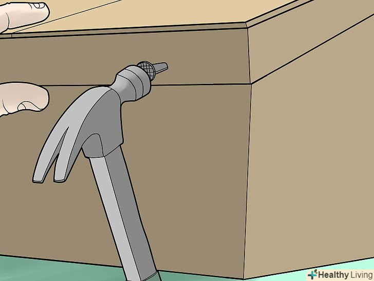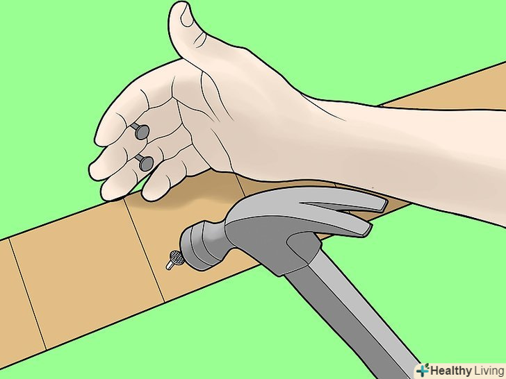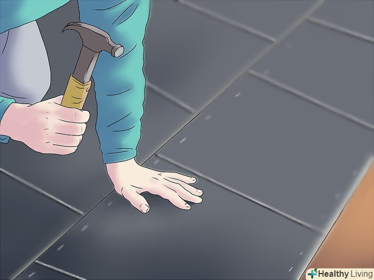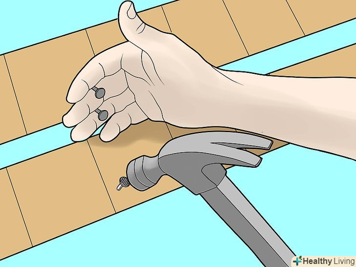 - Забивайте цвяхи приблизно на 3/4 дюйма на 1.8 сантиметра вище позначки. Також вбийте цвяхи від 2 дюймів з кожного кінця черепиці, відповідно до двох інших, в цілому, ви будете використовувати чотири цвяхи для кожної 3-ї черепиці, щоб зробити їх безпечними.