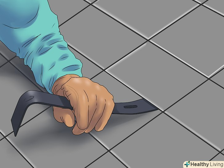 Почніть видаляти черепицю в самому кінці від контейнера. використовуйте вила для саду або спеціальну покрівельну лопату і відривайте її, так само можна вручну користуватися молотком. Подденьте цвяхи, тим самим послабивши тримає основу, а потім знімайте черепицю. Періодично збирайте сміття. Не намагайтеся вийняти всі цвяхи відразу, деякі будуть залишатися на черепиці.- Це сама фізично важка і брудна робота, тому переконайтеся, що спланували час на неї. Черепиця досить важка і брудна, прибирайте її вчасно, не дозволяючи сильно накопичуватися.
