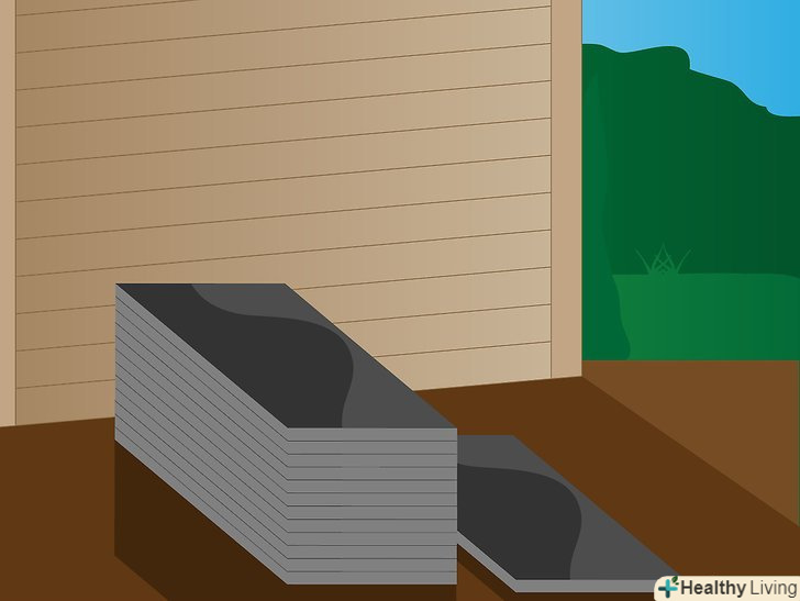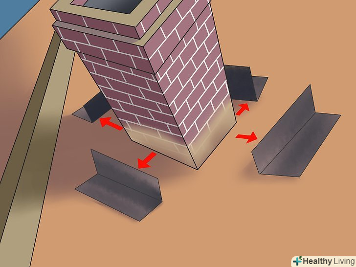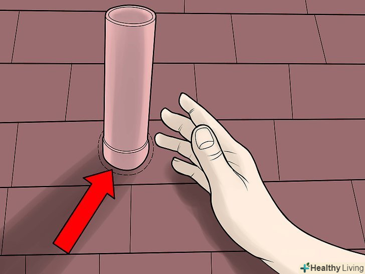 Галька навколо отворів і димоходів. виріжте квадрат, шириною близько 6 дюймів від труби, з отвором в центрі, досить великий для труби, щоб вона туди помістилася. Прикріпіть його за допомогою клею і закінчите роботу.- Вентиляційна труба" чоботи " доступна, в тому випадку, якщо ви можете пробиратися над вентиляційними трубами, припускаючи додатковий захист. Гумова прокладка допомагає їй щільніше прилягати і захищає корпус від витоку. [6]