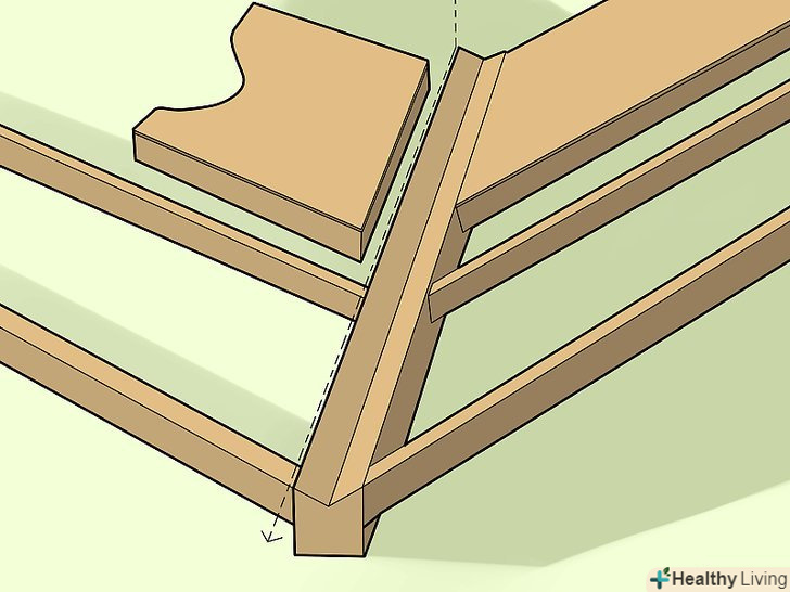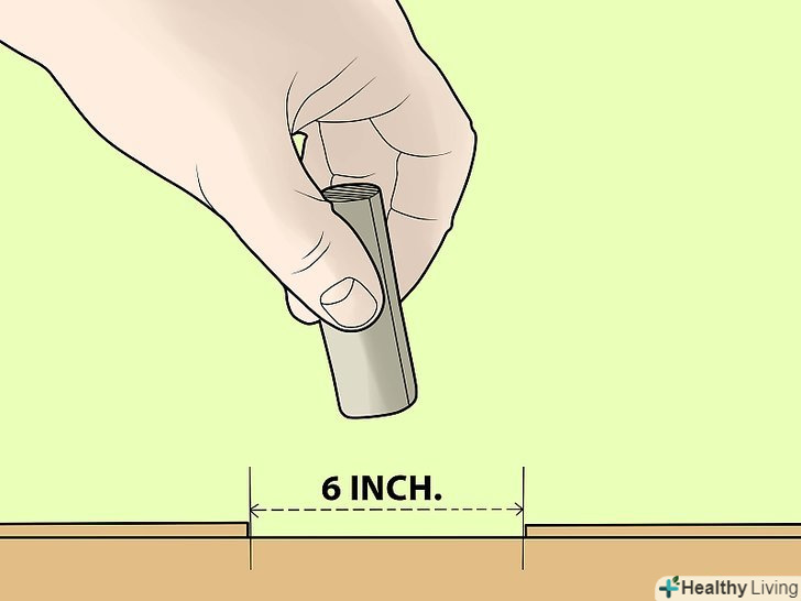 Слідуйте по лінії, і прибивайте цвяхи на черепиці вниз з інтервалом в 6 дюймів (15 см). і простір між цвяхами в 3 дюйми (7 см) від верхнього краю. Залежно від виду черепиці, яку ви купите, до неї може додаватися спеціальний початок для черепиці або рулон смугового матеріалу, який ви ріжете по довжині вашої даху.- Забивайте цвяхи приблизно на 3/4 дюйма на 1.8 сантиметра вище позначки. Також вбийте цвяхи від 2 дюймів з кожного кінця черепиці, відповідно до двох інших, в цілому, ви будете використовувати чотири цвяхи для кожної 3-ї черепиці, щоб зробити їх безпечними.