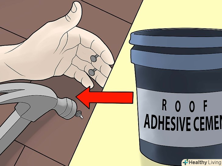 Правильно встановлена черепиця повинна залишатися відносно якісною протягом усього терміну служби, але почне псуватися на краях, оскільки вони почнуть зношуватися. це не повинно бути проблемою протягом перших кількох років, звичайно якщо деякі з них не були встановлені неправильно. Хороша ідея піти і прикріпити черепиці, які здаються хитаються.- Вбийте будь-які хитаються цвяхи або витягнути їх і замініть на нові покрівельні цвяхи для кріплення черепиці. Тримайте Покрівельний клей для робочих місць під рукою і додати невелику кількість там, де це необхідно.