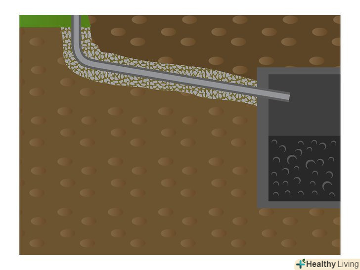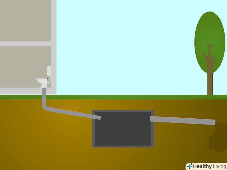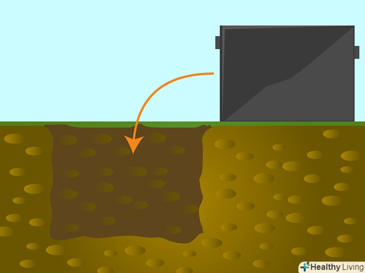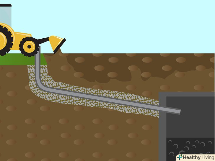 Викопайте котлован такого розміру, щоб в ньому помістився ваш бетонний аеробний резервуар. Резервуар зазвичай складається з двох частин. У нижній секції показана перегородка резервуара. Наступна секція приймає стік з будинку або будівлі. Після початкового бактеріологічного поділу стік перетікає в другу секцію, де він далі розкладається перед виходом в поле фільтрації.- Виконайте розбивку і викопайте дренажне поле такого розміру, який був визначений в процесі отримання дозволу. При виконанні розбивки і виїмки грунту не забувайте дотримуватися необхідний примусовий потік між резервуаром і полем фільтрації.