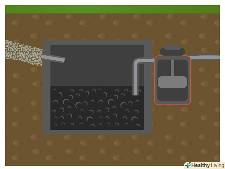За септичним резервуаром встановіть насосну камеру. у насосній камері, яка іноді називається напірним резервуаром або дозатором, знаходиться електричний насос, який використовується для переміщення стоку з місця на місце, а в підсумку в поле фільтрації для остаточної утилізації.- Установка насосної камери виконується аналогічно септичному резервуару. У камері встановлений насос і поплавці, які працюють з тимчасовими проміжками і перекачують стоки в поле фільтрації. Це замкнута система. Для дотримання норм установка електрообладнання зазвичай повинна виконуватися ліцензованим електриком. У регіонах з високим рівнем підземних вод насосна камера або додаткові установки аеробного очищення стічних вод можуть залишатися переважно порожніми більшу частину часу, тому для захисту від спливання такі резервуари необхідно оснастити додатковою вагою або захисними конструкціями.