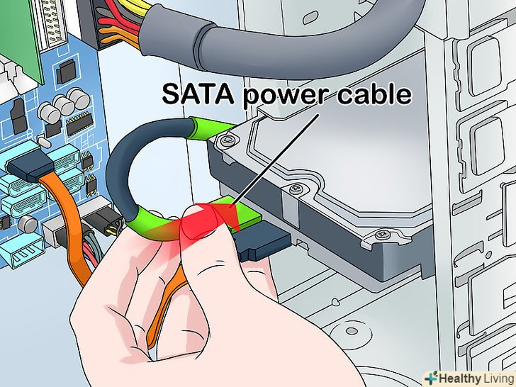 Підключіть жорсткий диск до блоку живлення.більшість нових блоків живлення мають SATA-штекери; на старих блоках живлення є Molex-штекери (4 — контактні)–в цьому випадку купите адаптер Molex-SATA.- Переконайтеся, що кабелі підключені надійно.
