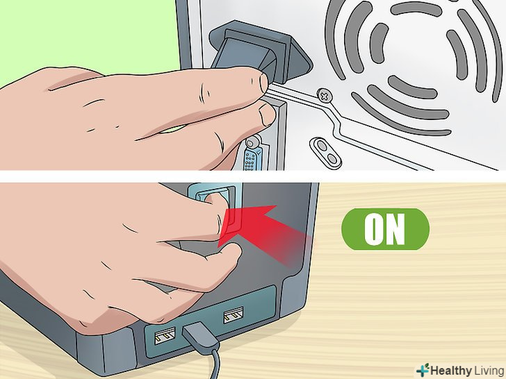 Підключіть комп'ютер до електромережі і включіть його.ви повинні почути звук роботи жорсткого диска.- Якщо ви чуєте звукові сигнали або неприємні звуки, негайно вимкніть комп'ютер і перевірте, чи правильно підключений жорсткий диск.