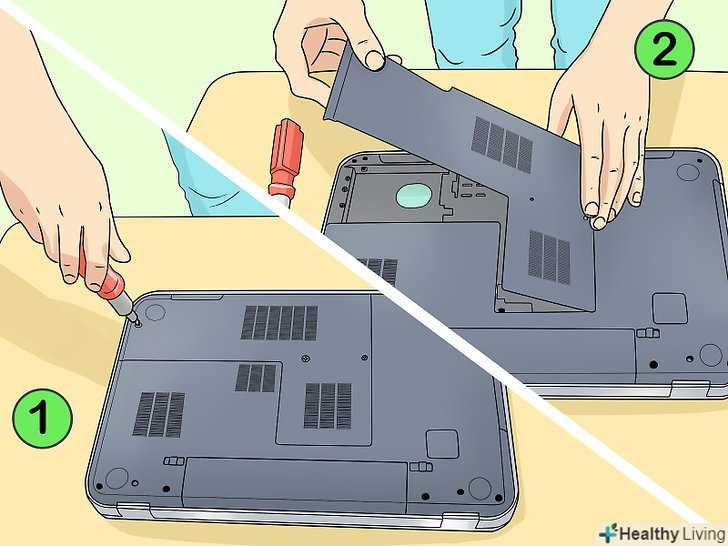 Зніміть нижню панель ноутбука.цей процес залежить від моделі ноутбука, але в більшості випадків вам знадобиться викрутка.- Щоб відкрити корпус деяких ноутбуків потрібна спеціальна викрутка.