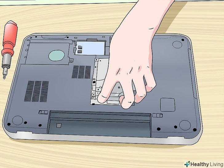 Відкрийте відсік жорсткого диска.як правило, відсік позначений значком у вигляді жорсткого диска. Щоб відкрити відсік, скористайтеся маленькою хрестоподібною викруткою.- У більшості ноутбуків є тільки один жорсткий диск. У деяких дорогих моделях встановлюють два диска. Якщо ви змінюєте єдиний жорсткий диск, встановіть на новий диск операційну систему.