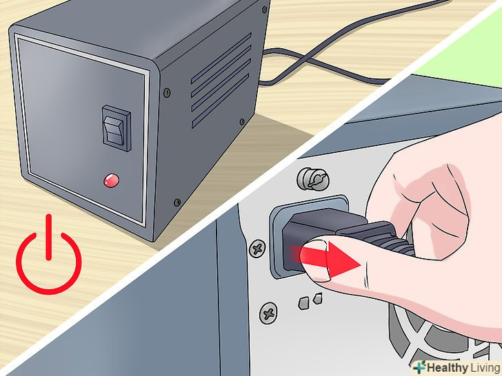 Вимкніть комп'ютер і відключіть його від електромережі.якщо можна, вимкніть комп'ютер за допомогою кнопки на блоці живлення на задній панелі корпусу; також вимкніть комп'ютер від електророзетки.