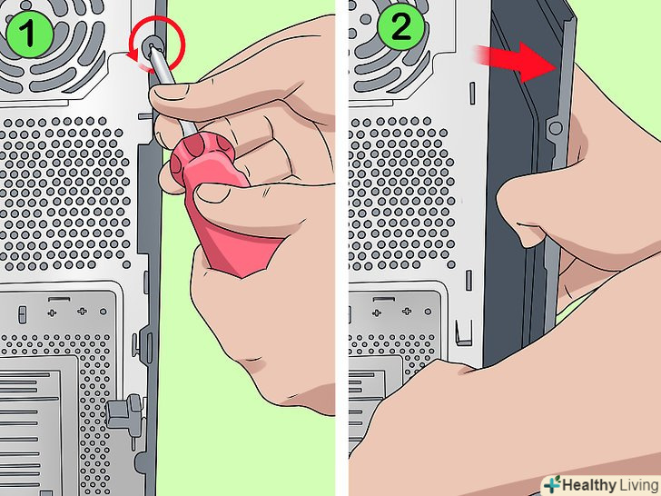 Зніміть бічні панелі комп'ютерного корпусу.для цього можна скористатися хрестоподібною викруткою Phillips, але більшість нових корпусів мають гвинти з накатаною головкою. Зніміть обидві панелі, щоб зафіксувати жорсткий диск гвинтами з обох сторін.