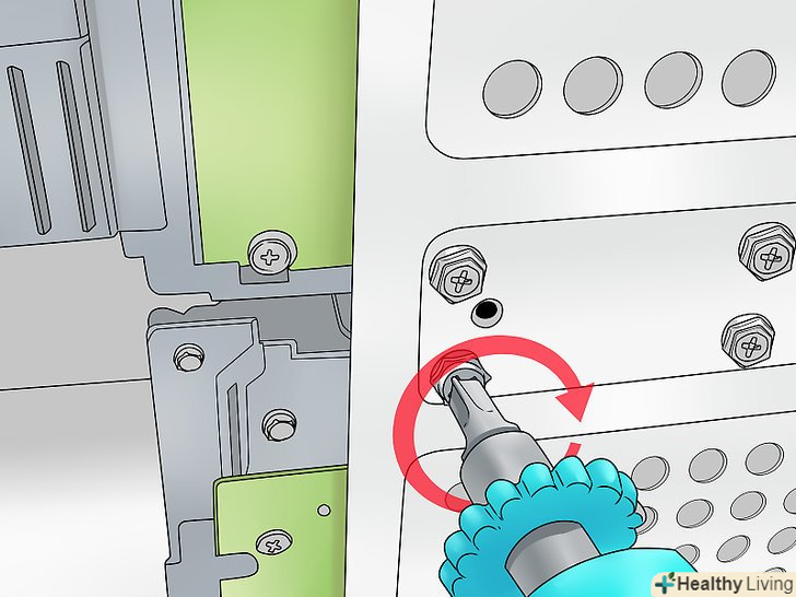 Зафіксуйте жорсткий диск.вставивши жорсткий диск у відсік, зафіксуйте його гвинтами. Рекомендуємо закрутити по два гвинти на обох сторонах диска. Якщо не зафіксувати жорсткий диск, він буде переміщатися і більше нагріватися, що призведе до його пошкодження.- Затягніть гвинти, але не надмірно, щоб не пошкодити диск.