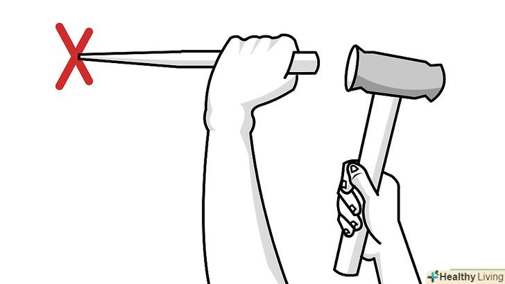 Пробивайтеся через особливо тверді перешкоди за допомогою гострого зубила по бетону. часом процес свердління йде не так, як очікувалося. Якщо ви натрапите на особливо твердий ділянку бетону, введіть в отвір загострене зубило по бетону і постукайте по ньому молотком, щоб розкришити бетон в цьому місці. Будьте обережні, щоб випадково не забити зубило занадто глибоко, коли його буде важко вийняти назад. Потім знову вставте в отвір свердло дрилі і продовжуйте свердлити. [14]- Якщо помітите іскри або візуально побачите в отворі метал, то ви натрапили на арматуру. Негайно зупиніть роботу і перейдіть на використання Свердла по металу, поки не пройдете крізь металеву перешкоду.