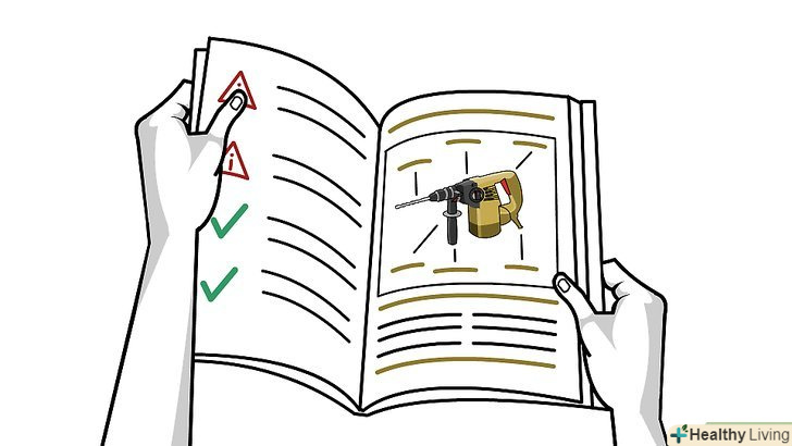 Вивчіть інструмент. Прочитайте керівництво користувача і запам'ятайте призначення всіх кнопок і перемикачів на інструменті. Ви повинні добре знати, як поводитися з інструментом, перш ніж переходити до наступного кроку.- Дотримуйтесь заходів безпеки. У тому числі надіньте захисні окуляри, щоб в очі не потрапила бетонна крихта, скористайтеся берушами, щоб не пошкодити слух, і товстими робочими рукавичками, щоб захистити руки від підвищеного тертя і розпечених від роботи свердел. Для тривалих робіт, при яких виникає багато пилу, також рекомендується надіти респіратор.