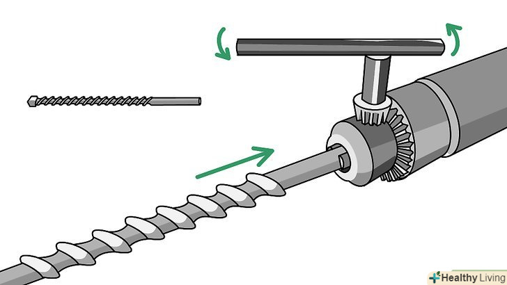 Вставте в інструмент високоякісне Свердло по бетону. Свердла по бетону з твердосплавними наконечниками (або, як може бути зазначено на упаковці, "ударні Свердла") спеціально призначені для ударних дрилів і витримують навантаження, що виникає при ударному свердлінні міцного бетону. Довжина робочої частини свердла з канавками повинна бути не менше глибини отвору, яке ви збираєтеся просвердлити, так як ці канавки важливі для вилучення утворюється пилу з отвору. [4]- Для перфораторів необхідно використовувати спеціальні свердла, або так звані Бури, з маркуванням SDS або SDS-MAX (для свердління отворів до 1,5 см в діаметрі) або пробивні бури (для отворів діаметром 2 см і більше). [5]