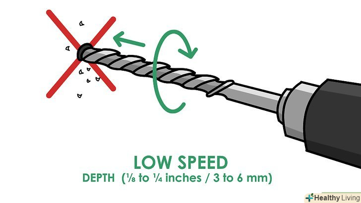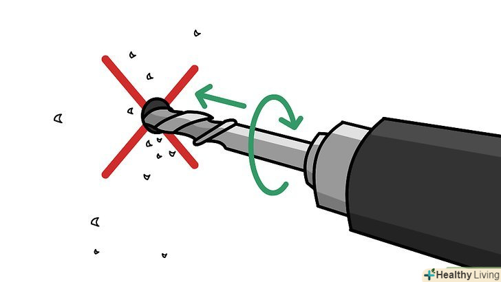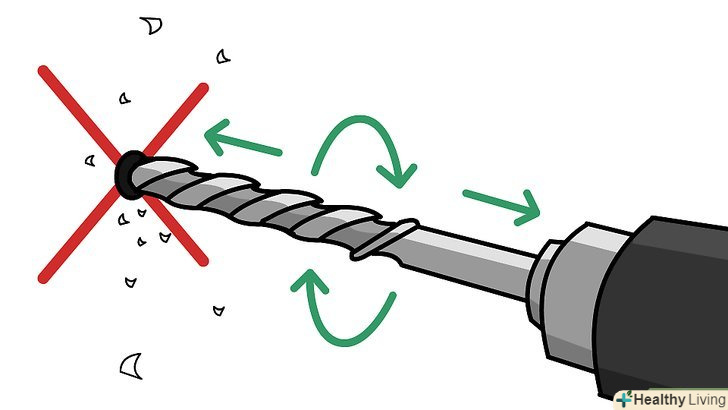 Періодично виймайте дриль з отвору. кожні 10-20 секунд відводите дриль трохи назад і знову вводите назад в отвір. Це допомагає звільнити отвір від пилу, що скупчився. [13]- Періодично вимикайте дриль і виймайте її з отвору, щоб інструмент міг охолодитися протягом декількох секунд. Це особливо стосується звичайних дрилів без ударної функції, так як вони легко перегріваються від тривалої роботи.