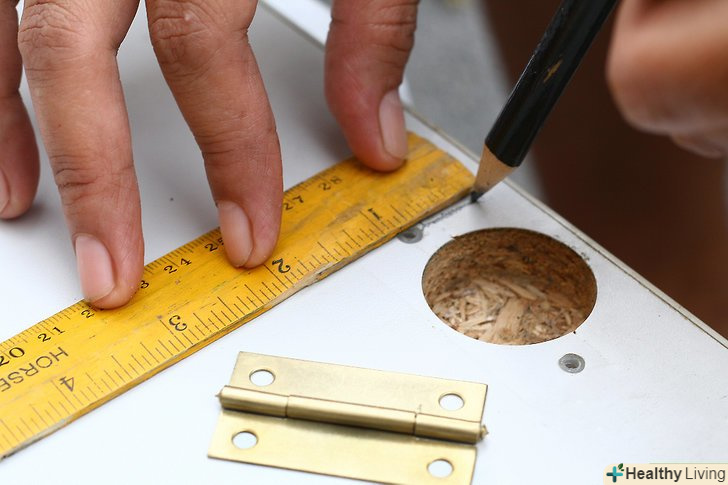 Позначте невелику лінію олівцем у центральній точці, де старі петлі прикріплюються до корпусу шафи. лінія повинна бути трохи більше, ніж ширина вашої нової петлі і повинна бути паралельна нижній частині корпусу шафи.