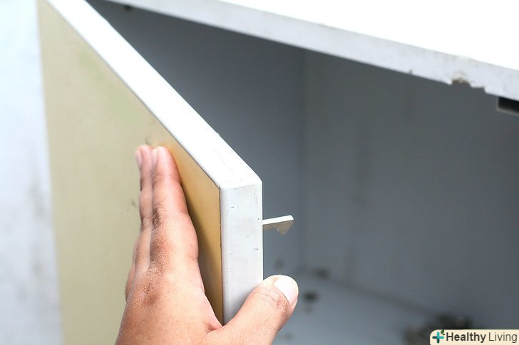 Попросіть помічника, щоб той тримав дверцята шафи навпроти рами.