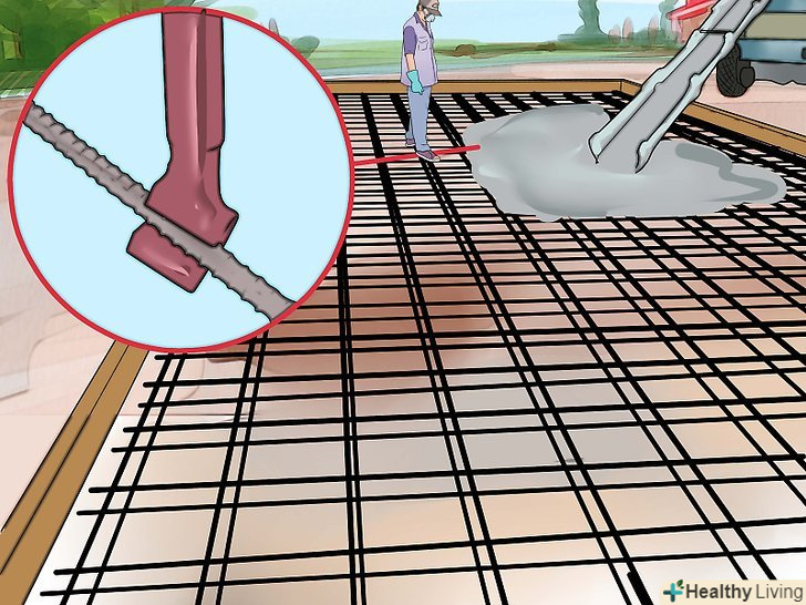 Підіпріть або підтримайте вашу арматурну конструкцію. як тільки рівень або клітина зібрані, Ви повинні утримати їх в заданому положенні, так, щоб бетонна заливка повністю їх покрила. Для цієї мети часто використовуються арматурні фіксатори або бетонні блоки. Розташуйте їх в просторах, так, щоб не дати арматурним стрижнів погнутися або зміститися, що може зменшити зону бетонного покриття, яке ви плануєте отримати. Для фундаменту товщиною в 12 дюймів шар арматури зазвичай розташовують в 4 дюймах від низу бетонного покриття, з зазорами з боків від 2 до 4 дюймів.