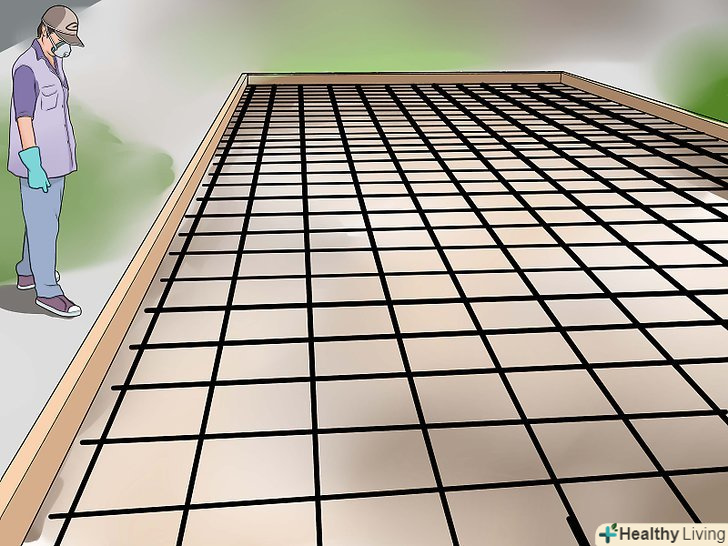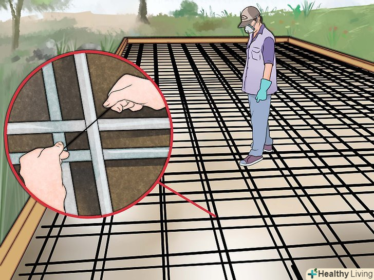 Відкалібруйте арматуру. розкладіть окремі стрижні, арматурні хомути і стикові стрижні відповідно до схеми. Для прикладу візьмемо бетонну плиту розміром 365 х 365 см з довжиною арматурного стрижня в 20 см з одного боку і 30 з іншого. Визначте розмір стрижнів для кожного напрямку, позначте два або три стрижня з зразковим розміром і розташуйте їх в потрібному порядку, далі прорахуйте необхідну кількість стрижнів. Найчастіше, схеми розташування арматури дуже специфічні, наприклад, “18 стрижнів (номер 5), 350 см завдовжки, по половині в обидві сторони". Це означає наступне: вам потрібно 18 штук, стрижнів розміру 5 (1,25 см діаметром), по 9 стрижнів в різному напрямку, верхні паралельно нижнім.