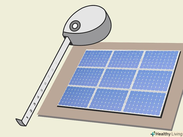 Виміряйте свою підкладку пластинами. Виміряйте простір, в який буде поміщена підкладка. Вам знадобиться рамка більшого розміру, ніж підкладка. Додайте по 1 сантиметру з кожного боку, щоб звільнити місце для бортиків рамки. Якщо не залишиться простору розміром в 2,5х2, 5 сантиметра в кожному кутку, то після того, як ви помістіть підкладку з панелями в рамку, додайте вільного місця по кутах.- Переконайтеся, що в кінці достатньо місця для шин.