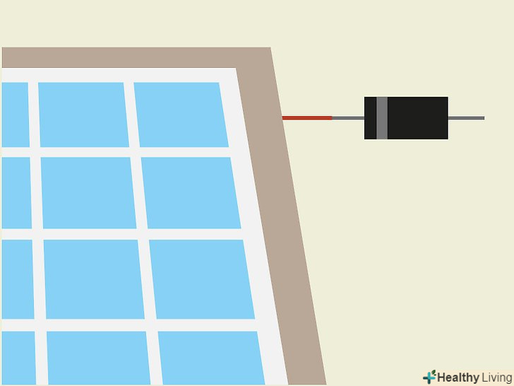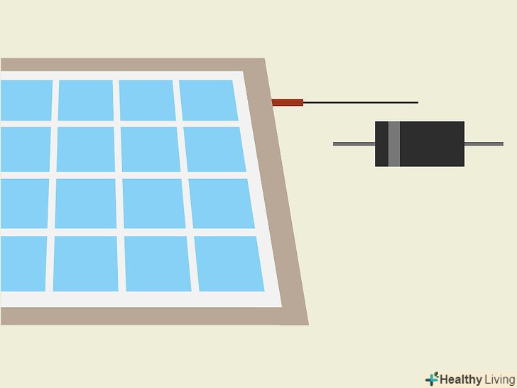 З'єднуємо останню шину з діодом. Візьміть діод трохи більшого номіналу, ніж сила струму у вашій батареї, і з'єднайте його з шиною, скріплюючи невеликою кількістю силікону. Світла сторона діода повинна бути спрямована в бік вашої панелі.