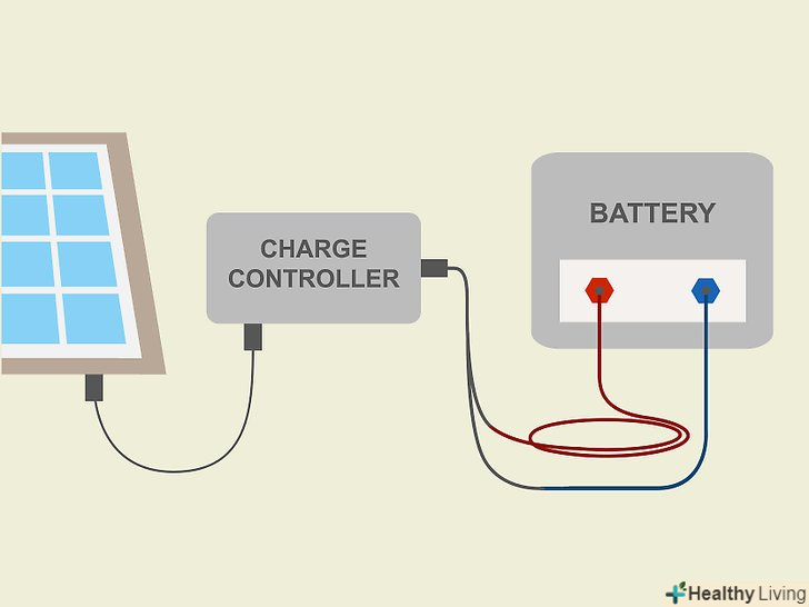 Приєднуємо батарею до контролера напруги. купуйте батарею, яка буде працювати з панеллю вашого розміру. Підключіть батареї до контролера напруги згідно з інструкцією виробника.