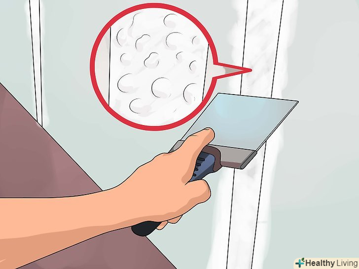- Не додавайте шпаклівку на недавно проклеєні стрічкою шви. Дайте їм один день для повного висихання між шарами, хіба що ви не використовуєте швидковисихаючу шпаклівку, яка твердне протягом години. Доброю ідеєю буде використання рожевої шпаклівки, яка після висихання стає білою, показуючи готовність до нанесення наступного шару.