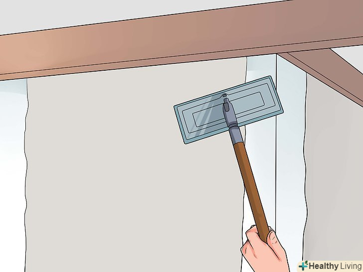 Прогрунтуйте всі стіни, потім знову зашліфуйте. нанесіть шар грунтовки на стіни, потім злегка зашліфуйте всю ділянку, використовуючи шліфувальну швабру. Хоча багато новачків пропускають цей крок, він є дуже важливим для отримання хорошого, гладкого результату і для уникнення ворсистості паперу, що залишилася від початкової шліфування.