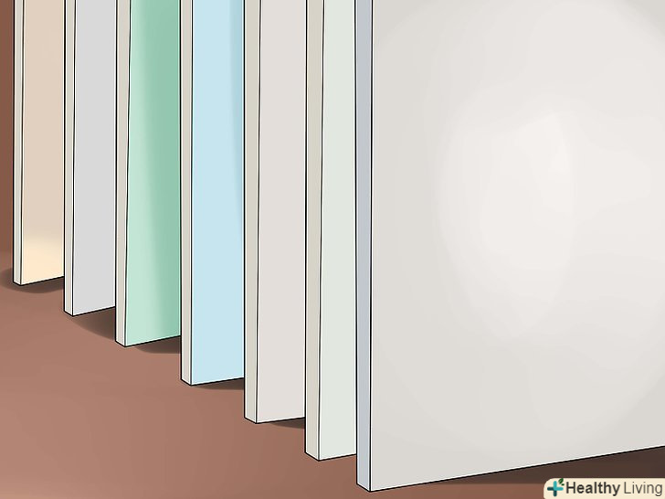 Зверніть увагу на склад гіпсокартону. при виборі гіпсокартону вибирайте структуру, відповідну приміщенню, в якій він буде встановлений. Для прикладу, існують вологостійкі рішення, які називаються "зелений камінь", і призначаються для використання в приміщеннях з високою вологістю, таких як гаражі та ванні кімнати. Перед покупкою перевірте наявність товару у вашому місцевому будівельному магазині.- Закатати весь будинок зеленим гіпсокартоном може виявитися зайвим, але це може бути і корисним в місцях з високою вологістю, таких як ванні кімнати, в той же час він не використовується в зоні установки ванни або душу. Зелений гіпсокартон не дуже підходить для установки в мокрих місцях. Для цього в зоні душу або ванни використовуйте плиту, армовану скловолокном.