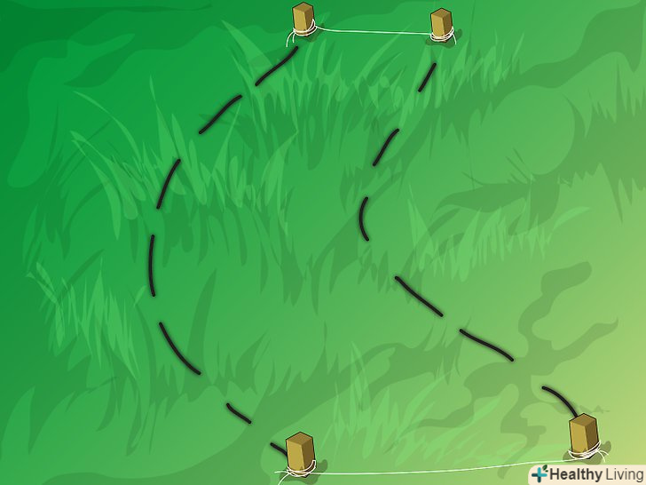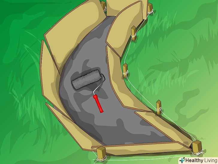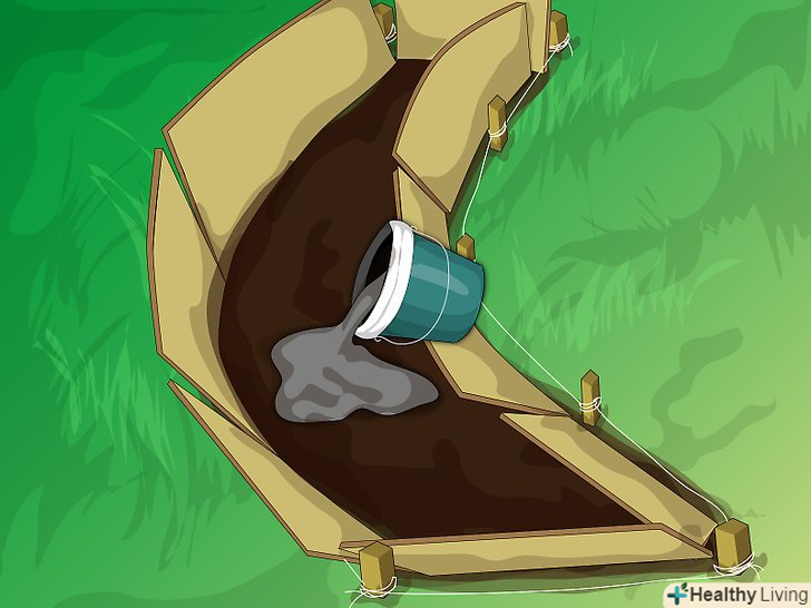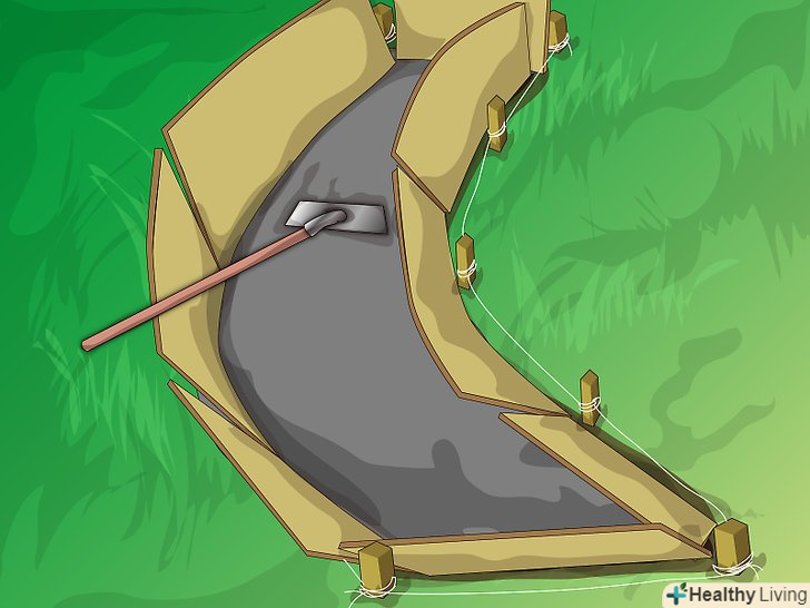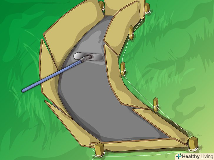 Встановіть форми за допомогою штирів або шматочків з дерева. починайте з вставки штиря або дерева в землю, тому як матеріал не в змозі зрушити з місця. Потім прибийте лицьову сторону форми до штирю або дереву, поки в той же час займаєтеся з мотузкою. Верх форми повинен лише торкатися до мотузки.