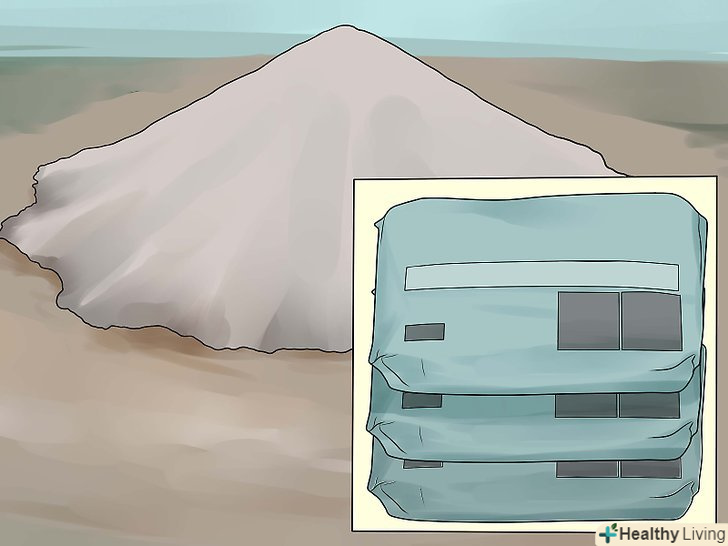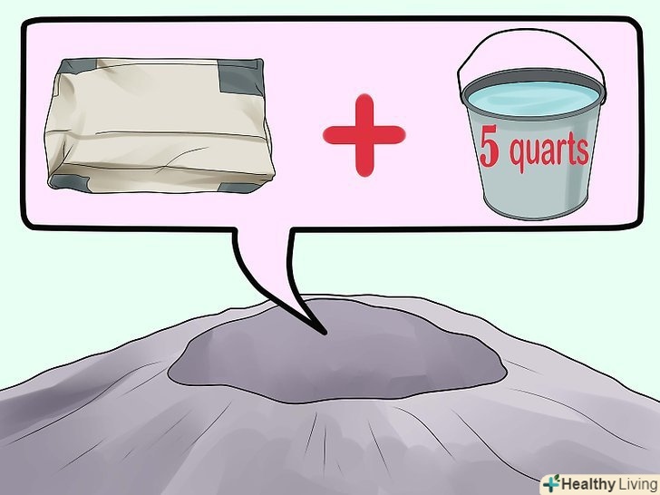 Використовуйте правильний пісок і цемент. найкраще для замішування підходить дрібний пісок для розчину, а нові нерозпечатані мішки цементу набагато краще, ніж вже роздруковані. Для нашого завдання підійде цемент Quickrete, Portland та інших марок. [2]- Деякі марки пропонують вже підготовлену суміш, завдяки чому немає необхідності додавати пісок. Вони коштують трохи дорожче, але набагато зручніше для невеликих робіт. Перед покупкою уважно вивчайте інформацію на упаковці. При відсутності необхідності додавання піску процес замішування залишається незмінним.