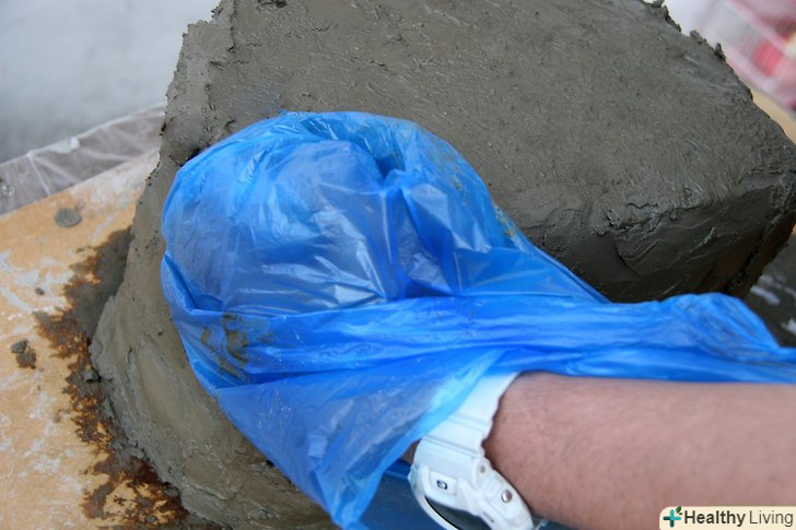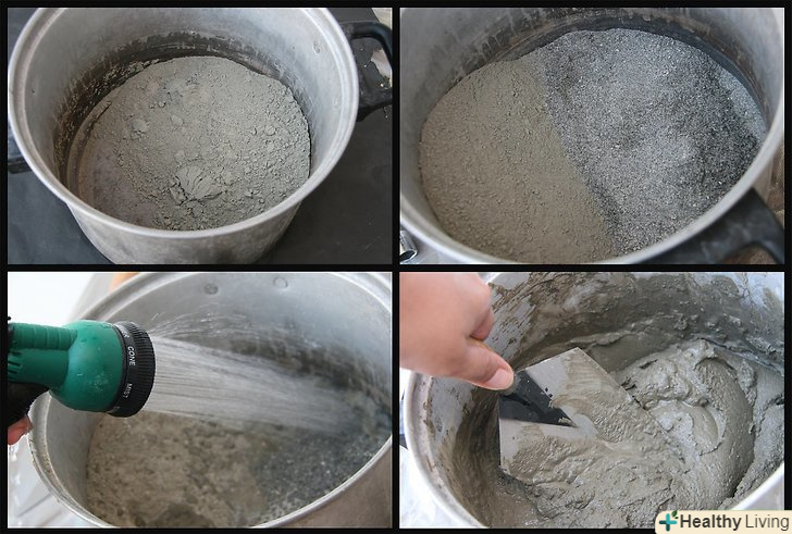 - Розведіть бетон . У відрі руками або кельмою, або в тачці за допомогою лопати, або в шматку фанери совковою лопатою, або в цементно-змішувальній машині. Надані варіанти вказані в порядку збільшення кількості бетону. Змішайте 3 частини чистого, промитого піску з 1 частиною цементу. Для додаткової міцності можете додати в бетон невелику кількість скловолокна. Меблевий клей, зола і мікрокремнезема також використовуються в професійному виготовленні каменів. Додайте до густої пасти воду і дуже довго розмішуйте перед використанням. Якщо ваші м'язи ще не ниють, значить, ви ще не досить розмішали бетон.